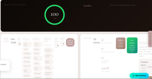 Unlimited Aria conversations · Full hair history · Hair Health Score · Priority advisor access